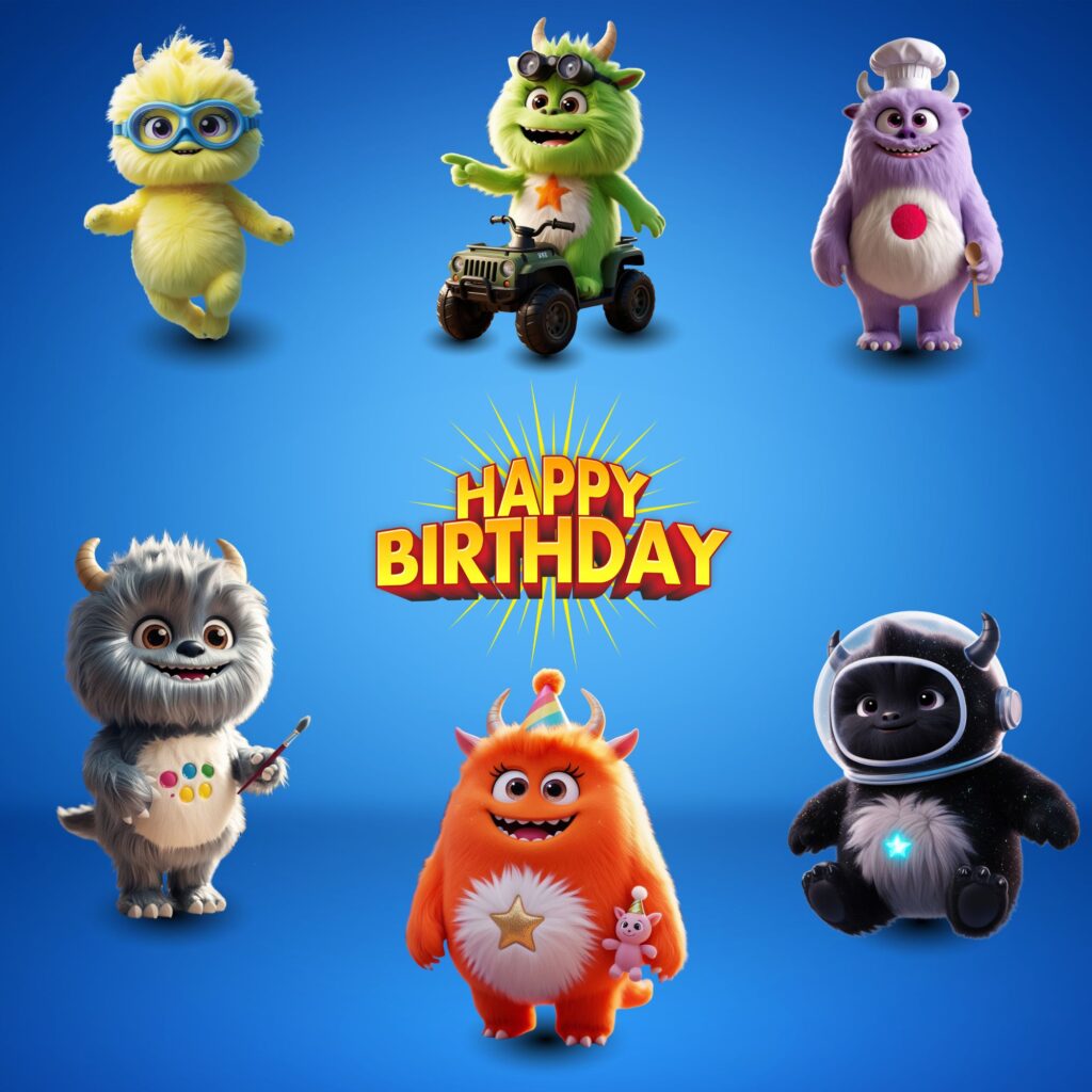 Each collection is designed as a personalized birthday book for kids, with a unique style and illustrations.